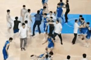 根据《中国篮球协会纪律准则和处罚规定》第二十七条第(三)项规定:有三名以上(含三名)运动员、教练员和工作人员参与打架的为群殴事件。对挑起事端和首先动手的运动员加重处罚,取消本次比赛参赛资格,情节严重、影响恶劣者停赛一至三年,直至撤消运动员技术等级称号。