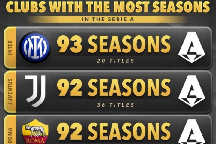 3、罗马,92个赛季,3冠