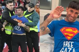 《罗马体育报》表示,这位球迷名叫马里奥-费里,过去曾多次在体育比赛中闯进体育场。在2022年卡塔尔世界杯,葡萄牙对乌拉圭的比赛时,他也曾手持彩虹旗冲进球场,当时他的T恤写着“拯救乌克兰”的口号。