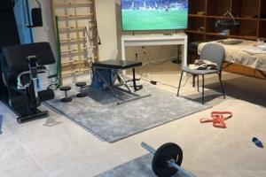 比赛中他更新社媒,晒出自己在健身房看比赛的图片,配文:第二节课,同时看比赛。加油,球队!